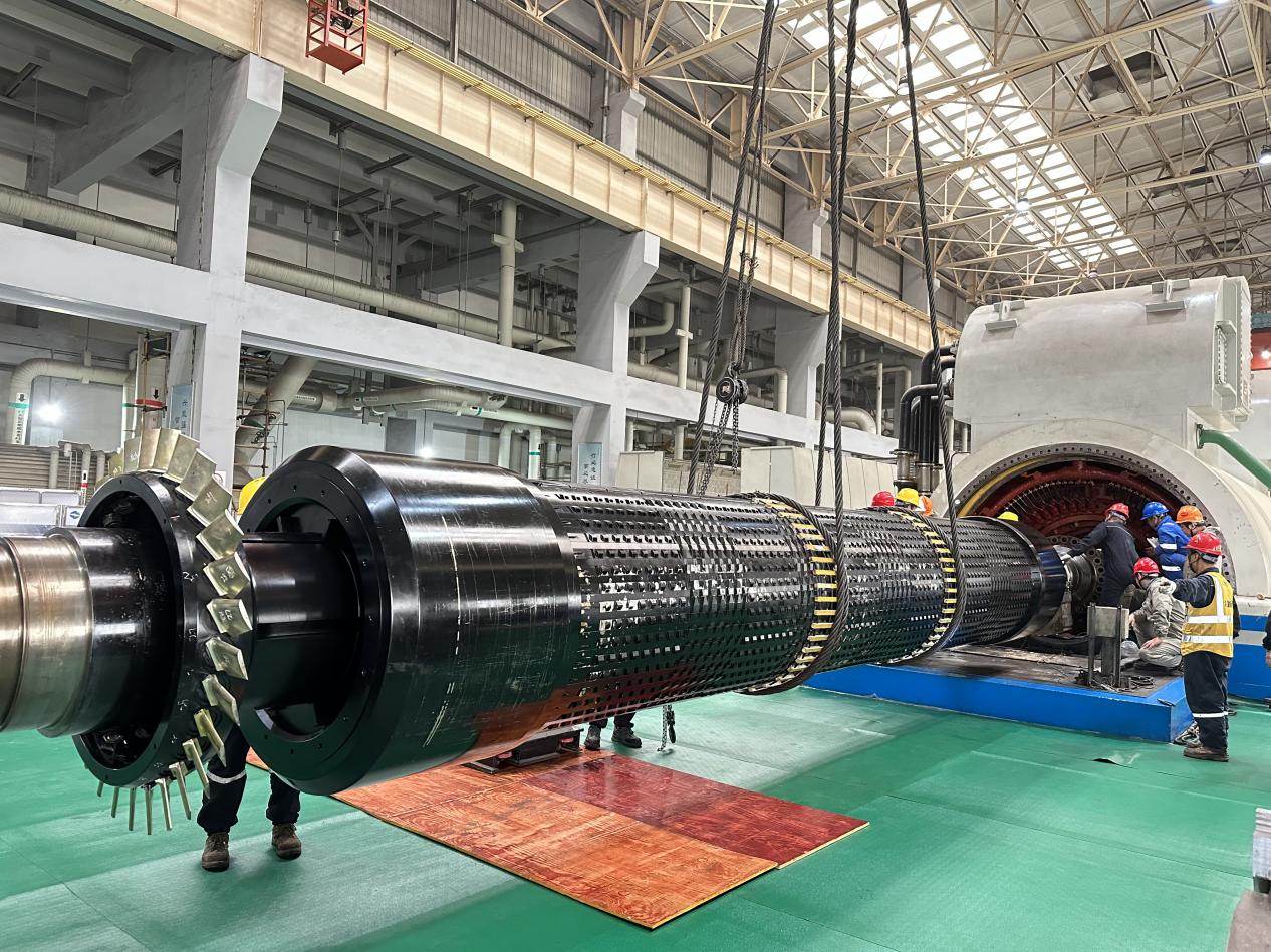 攻堅克難,嚴守質量標準。在發電機檢修區域,面對悶熱狹小的作業環境,檢修人員趴在地上、鉆進設備內部,對定子槽楔、波紋板間隙等進行細致檢查與維護,確保電氣和機械性能達標。高壓開關設備檢修區,檢修人員嚴格遵循標準流程,對觸頭、彈簧、操作機構等關鍵部件逐一排查、精細調整,及時更換磨損嚴重的零件,保障開關分合閘動作精準可靠。戶外主變和升壓站區域,檢修人員圍繞腳手架,對每一顆螺栓、每一處連接點仔細檢查,認真清理瓷瓶傘裙,踐行“修舊如新”理念,徹底消除設備隱患。